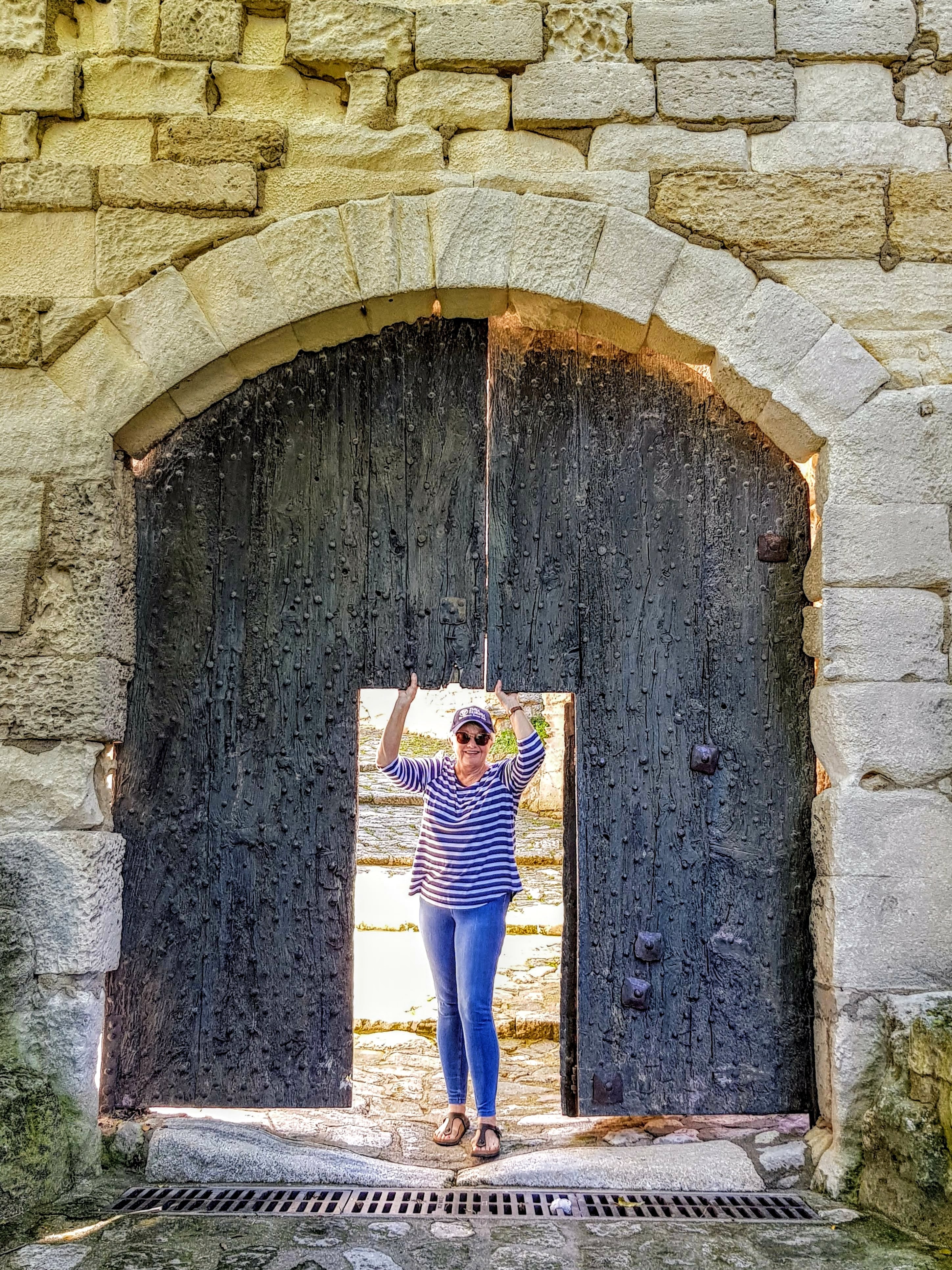 Domme is a commune in the Dordogne in south west France.  It was founded as a stronghold in 1281. Only 600 years older than our home !!!! We are so lucky to call it home for the week. High on a hill overlooking the countryside it is a perfect example of an ancient walled village. Roses cover the walls everywhere I look,  so i am a happy girl ! We visited here years ago together on a previous visit to France, but only for an hour, so were determined to return.