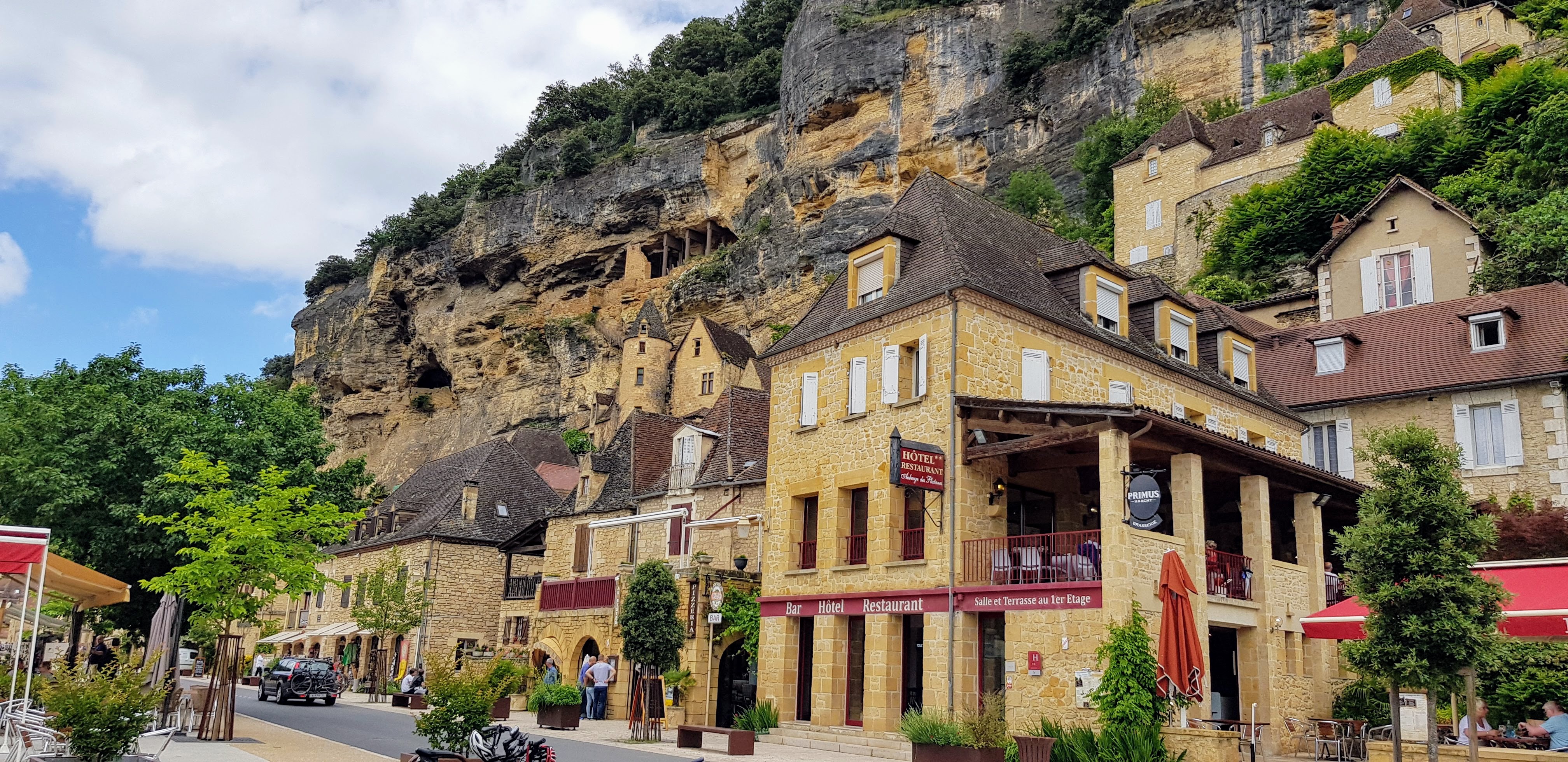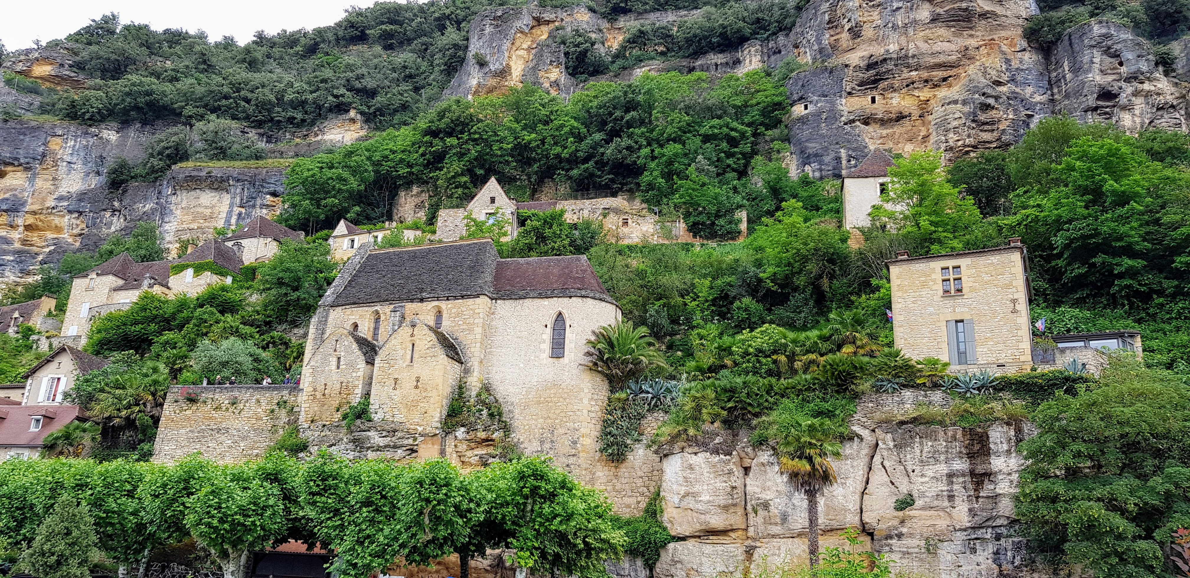 La Roque Gageac is believed to have been inhabited during  prehistoric times and still boasts the cliff side ruins of a fort built in the 12th century. After a major rock slide, the site was closed in 2007 but can still be seen from the village below.
