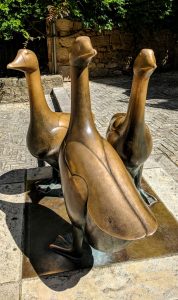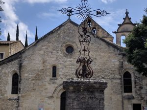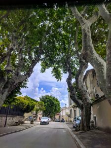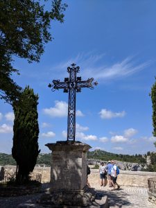 Walking kilometers today, we have visited the Monastere St Paul de Mausole where Vincent van Gogh was taken in, after the episode where he cut off his ear. We enjoyed the walking tour through the village and countryside that inspired Vincent, following the 19 panels displaying reproductions painted by the artist during his stay in St Remy. It was very sad reading how patients such as Vincent were treated for ailments such as depression and bipolar in the 1800’s. After leaving the hospital, we made our way back to St Remy for lunch before visiting St Martin’s church built in the 11th century.         ( Note song  : Don McLean….Starry Starry Night )