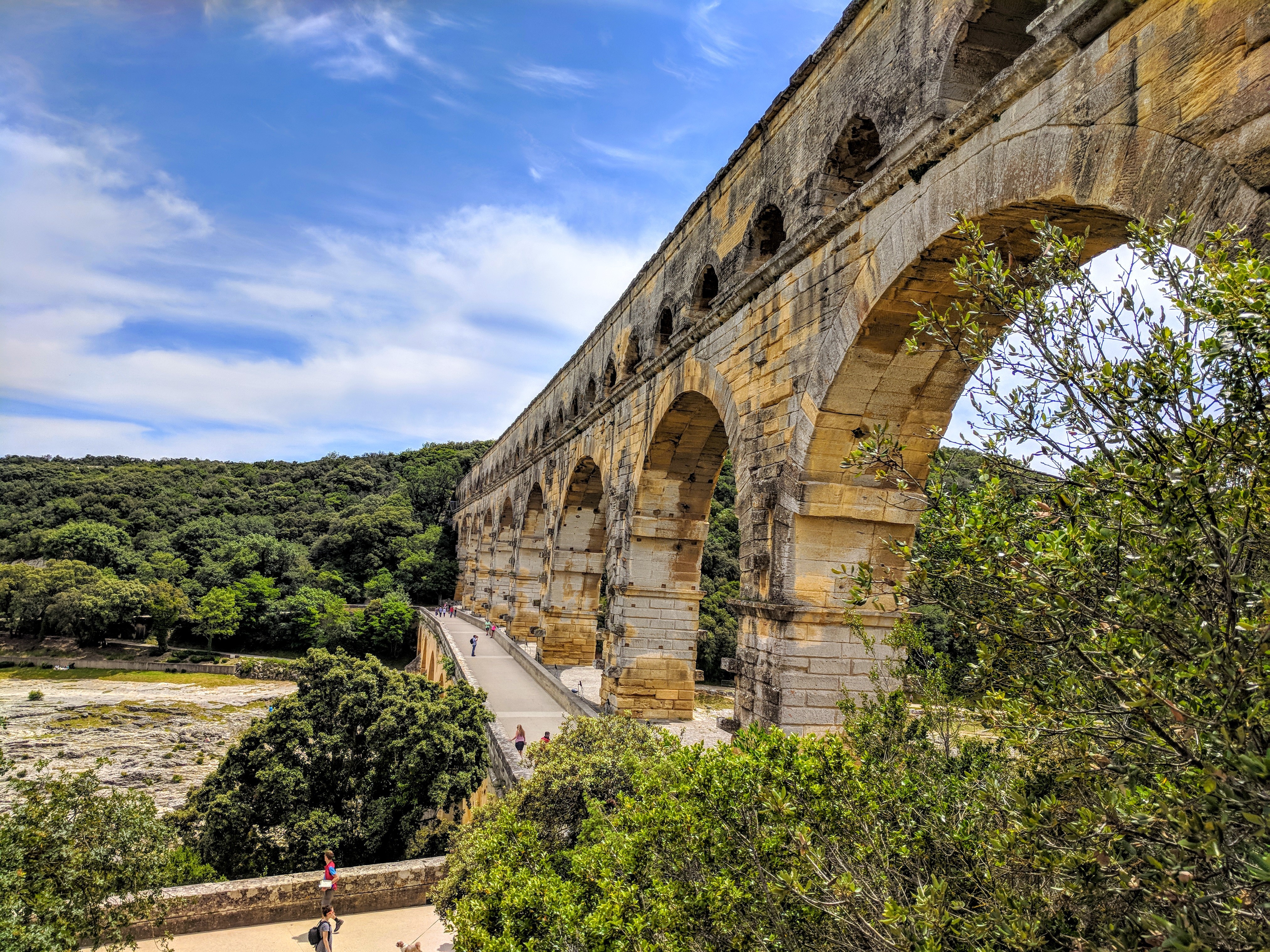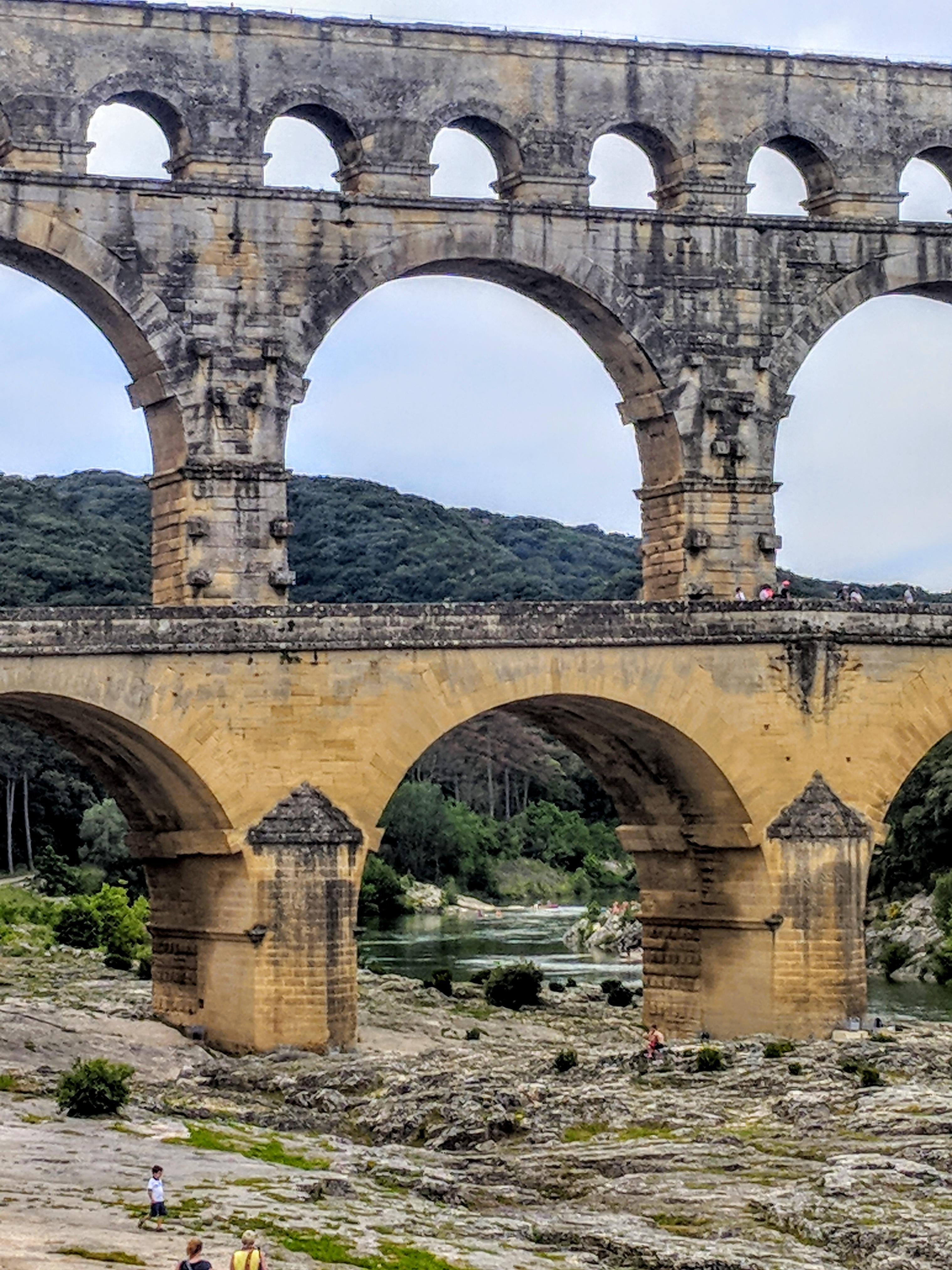Built 50 AD… yes very old. This UNESCO World Heritage monument, an ancient Roman aqua duct, crosses the River Gardon near the town of Vers Pont du Gard in southern France. It is the highest of all elevated Roman aqua ducts and I have to say, I am pleased we did not have to cross it in our canal boat last week !!!