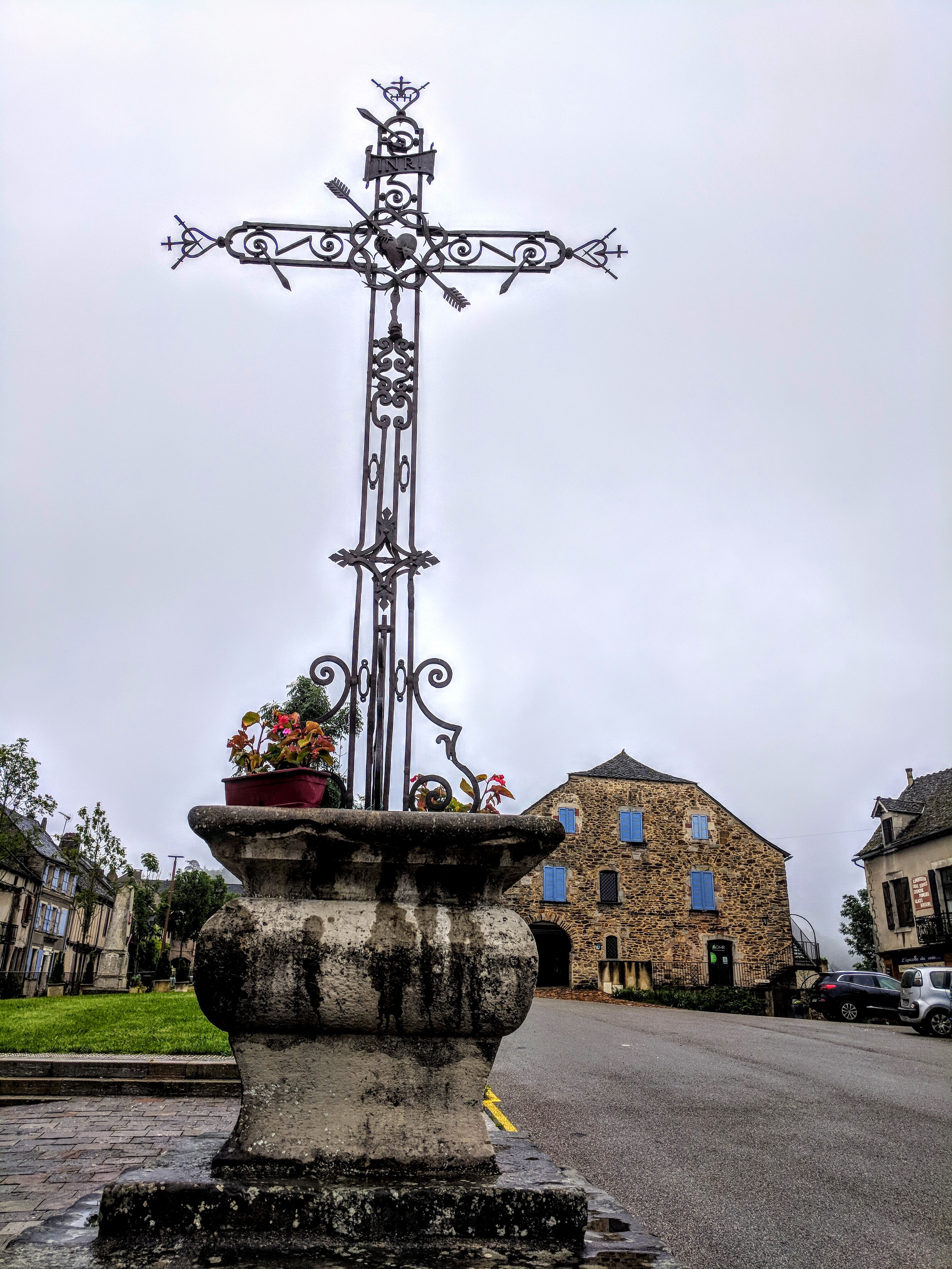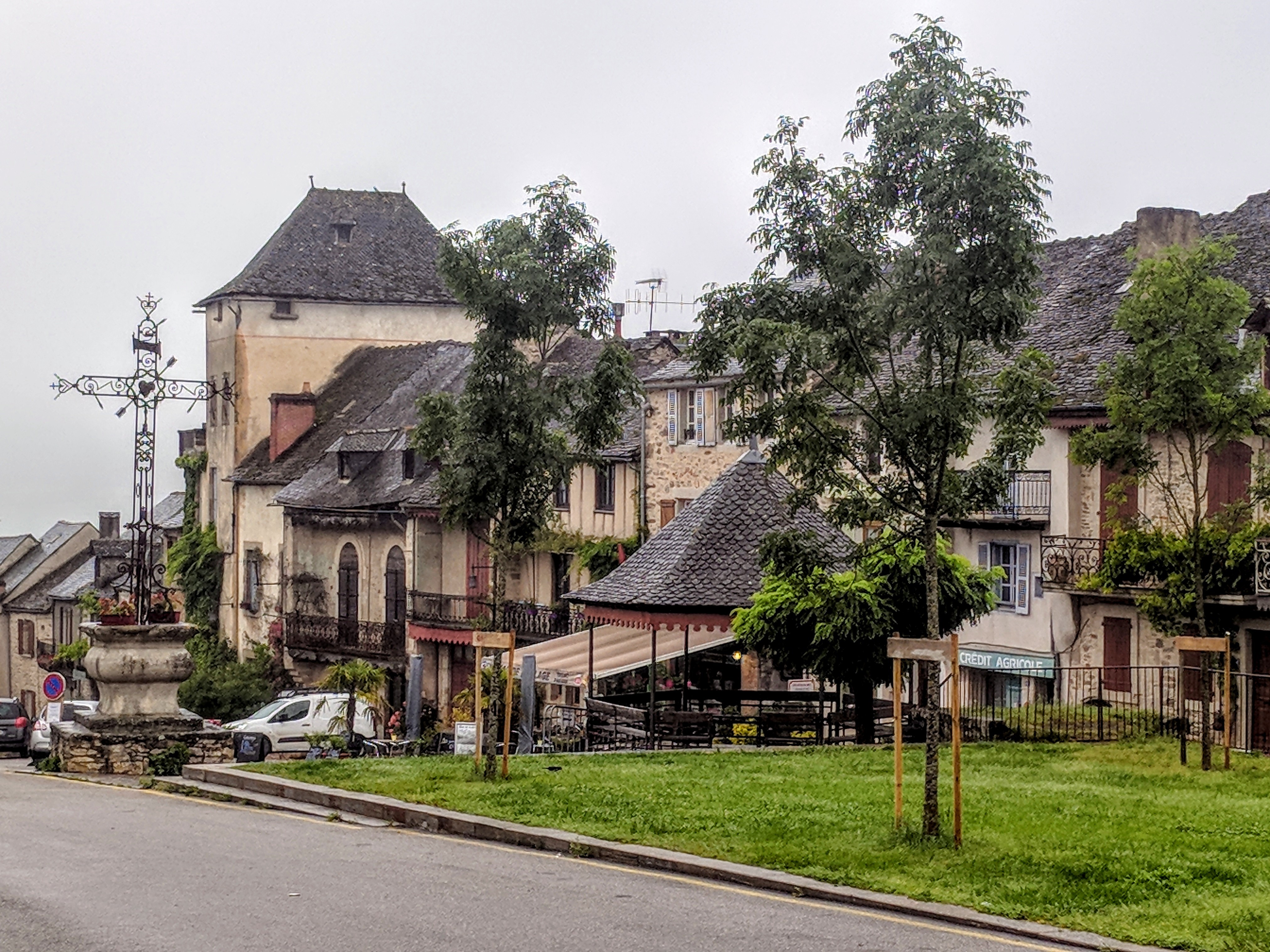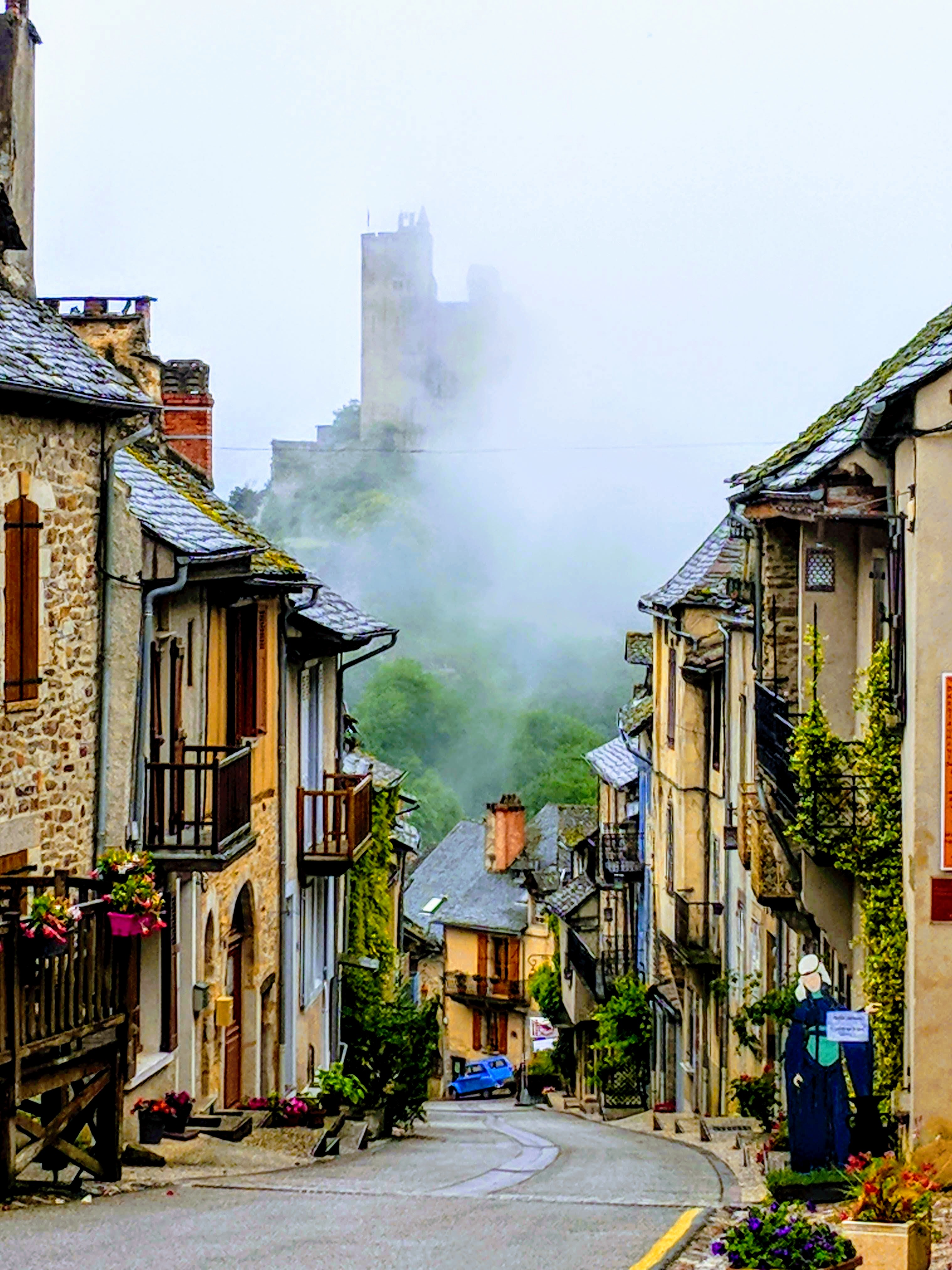 Najac… it was a foggy early morning, but the village is stunning. The impressive fortress is just poking through the fog.