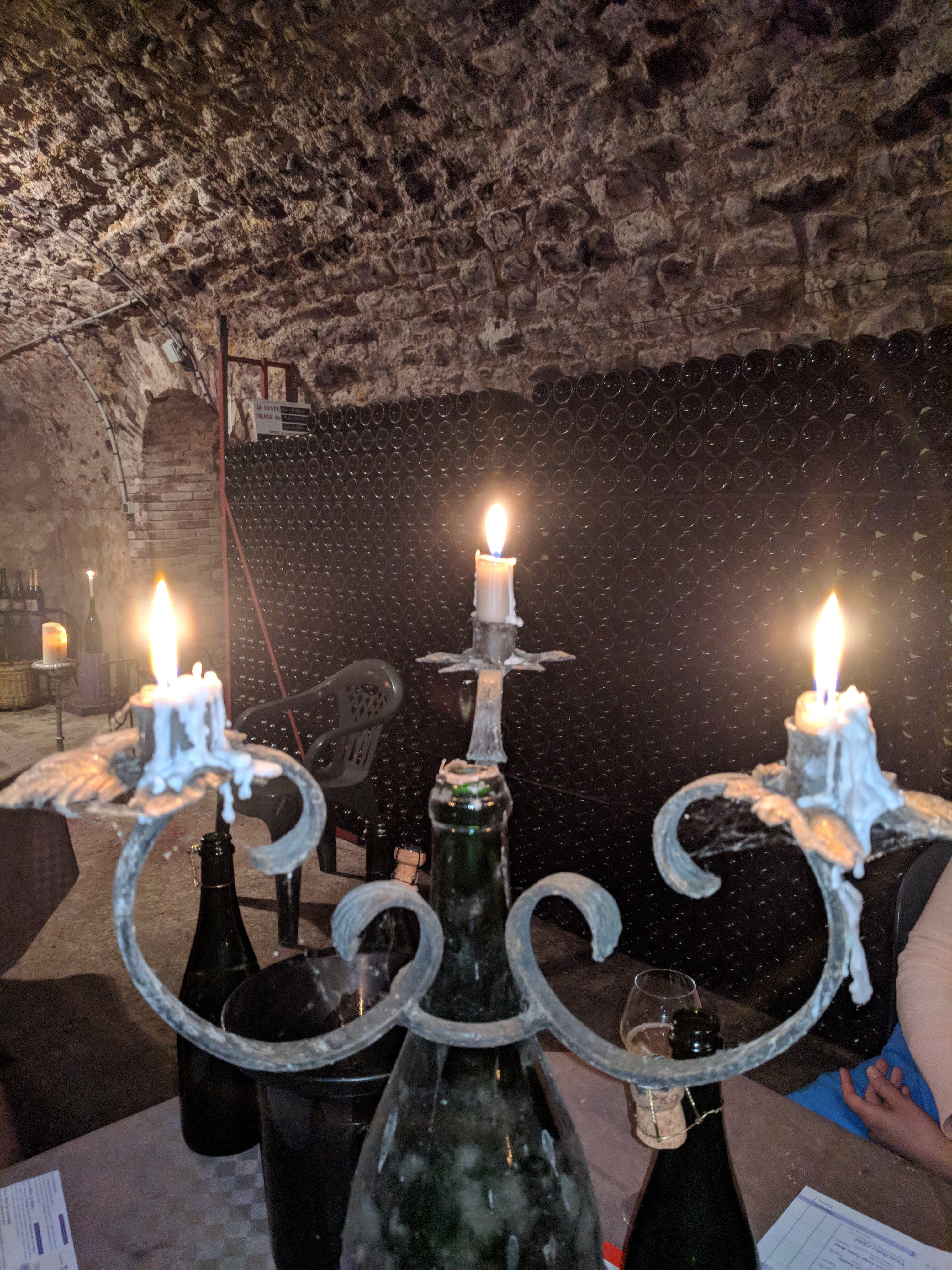 40 steps down underground. Dark and damp. With Cedric our eccentric sommelier giving us a private tasting, we were not sure whether we would return safely !!! Eventually did with champagne to share with Sophia and Frederick that night for an apperatif before the three course dinner they had prepared.