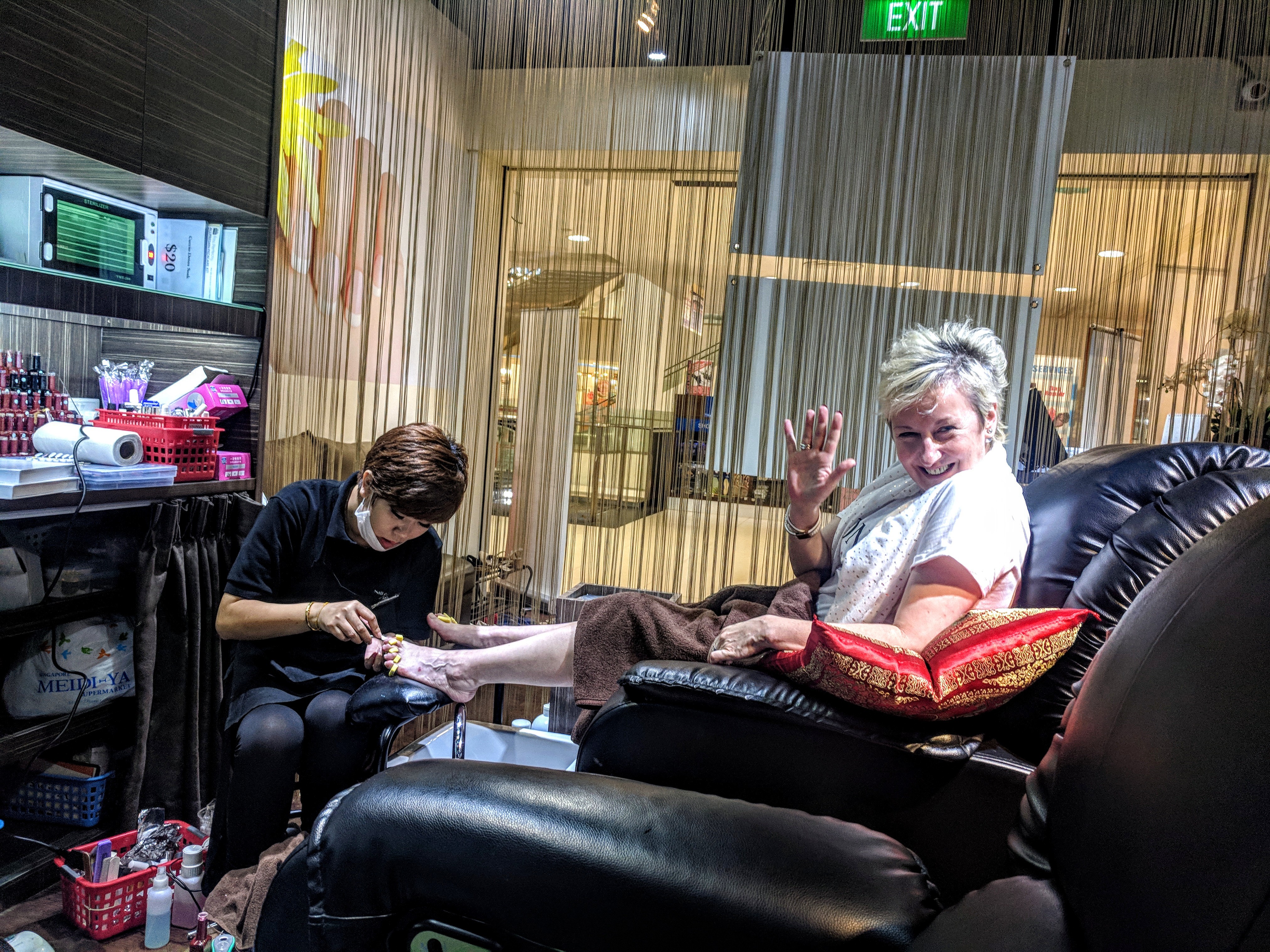 Rachael, who lives and works (head oboe player for 17 years with the Singapore Symphony Orchestra) and I had the funniest 2 hours pampering ourselves with a couple of beautiful and humerous Singaporean girls.