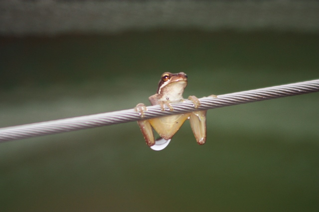 A late afternoon visitor… I took the photo just before the drop of water fell from his back
