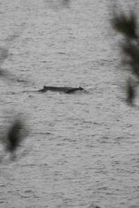 The restaurant overlooks the ocean. I took a photo of a mother and baby whale in the water right near the restaurant. Not a real good photo…sorry about that.