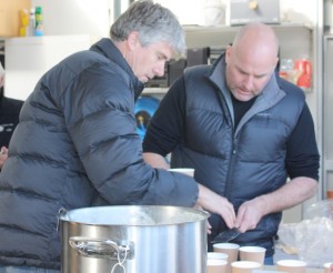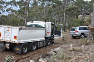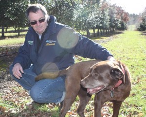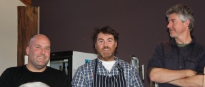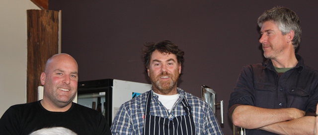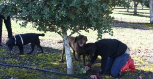 The exotic black truffles are now being hunted in the frosty mornings and this weekend we have joined Matt, Nick and Ross from “Gourmet Farmer” fame. ( our favourite TV show….. 3rd series starts early in 2013). We headed up to the Tamar Valley north of Launceston, about 2.5 hours from home, for a couple of days, staying in a gorgeous cottage right on the banks of the Tamar. On Saturday morning we met the guys at the Tamar Valley Truffles, and with coats and boots, and the help of the truffle dogs, searched for our truffles. We then went back to the fire at Moores Hill Winery for a 5 course lunch cooked by Matt, Nick and Ross using truffles for each course. Fun was had by all and the food was delicious.