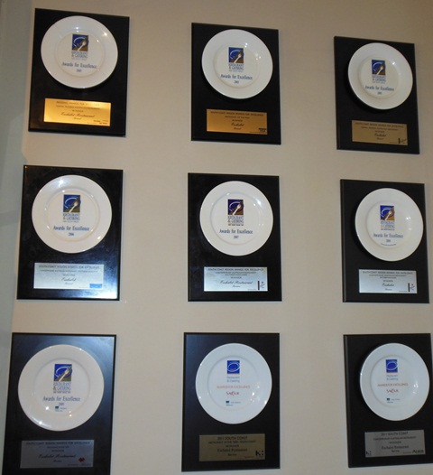 Just 15 minutes from Hobart’s CBD, overlooking the tranquil River Derwent, The Source Restaurant is at Moorilla, Tasmania’s 2nd oldest vineyard. We enjoyed a selection of tantalizing French and Modern Australian dishes prepared with local produce from small producers. The river & winery views are simply spectacular and the wine list reflects a passion for not only Moorilla wine, but quality International drops. The frequently changing menu is delicious !!! Mal enjoyed Tasmanian Wagyu Beef, while I had local Confit of Trout, all served with beautifully prepared vegies…. yummy !
