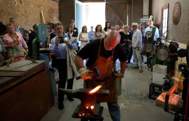 Loved Maggie’s preserves. If I did not have so many possums, my fruit tress would end up looking like this!One of Maggie and Colin’s pheasantsMaggie Beer… when ever we meet her she is always smiling. She wanted to use our kitchen for a week at Brundah in Ballina, but we had guests booked in. It would have been so much fun.The knife maker (cutler) at Seppeltsfield wineryA very small section of the Hentley Farm Restaurant… I was too busy having a good time to take too many photos.Chef from Hentley Farm Restaurant, Lachlan Colwill with some tasty morsels…Mal at Seppeltsfield Winery