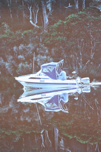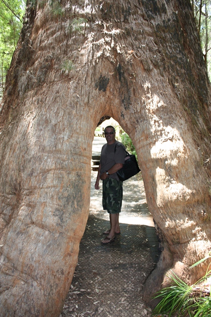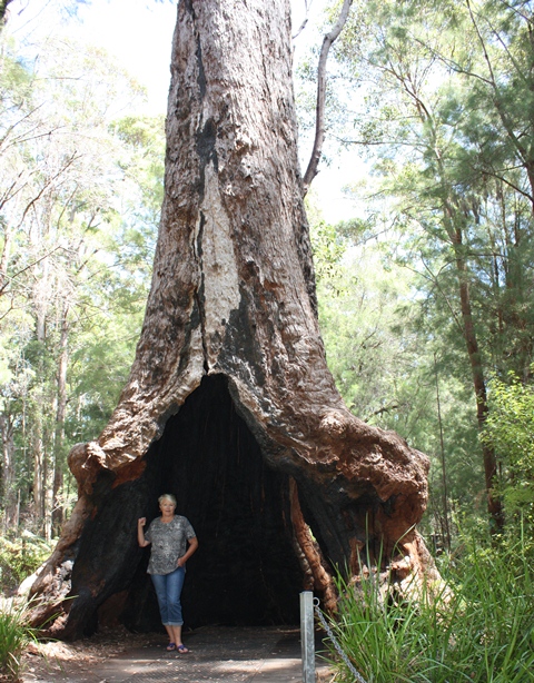 I loved all my photos. Too many..but could not delete any of them. The hollows in the Red Tingle trees have been caused over a long period of time by fire, fungal or insect attack. They are still healthy though.Some of the trees are over 400 years old...incredibleMal loved the EK HoldenTIt was certainly high....over 40 meters high ! Scary !!!!A lone fishermanWe finished the day with a freshly cooked maron meal...the fresh water maron was caught out the back in the dam....deliciousGetting too dark, but I loved the reflection on the water