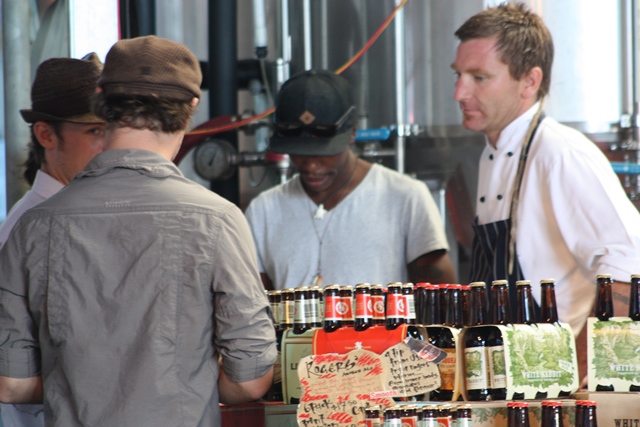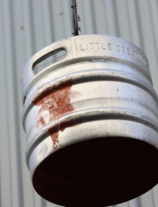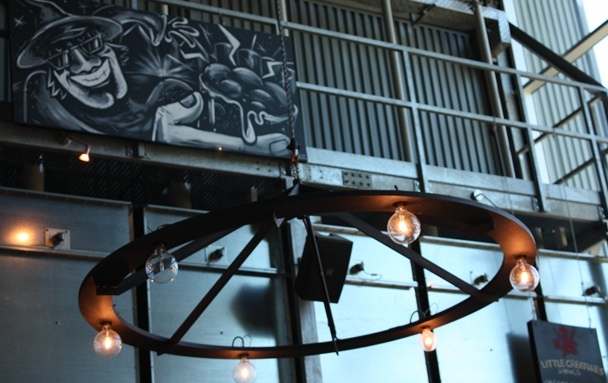 A beer keg lightOh no...not a hole in the pizza base."Little Creature's" logoAnother light...the brewery is made up of a number of huge sheds.It is a very organized restaurant and the staff don't stop.That is a very large lump of pastry being chopped into portions. They are so busy there these guys were making pizza portions for a few hours!Pay day after lunch service was finished...quite a few of the bar and waitress staff are actually overseas backpackers working their way around Australia.part of the brewery