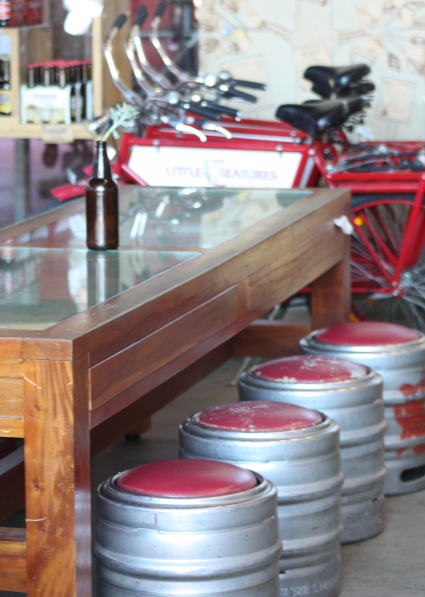 Bikes are free to borrow and ride around FremantleBeer keg stoolsAcross the road from Little CreaturesYes...it is a guy in a ladies nightie on his bucks day. Beck, you thought belly dancing was bad enough ???