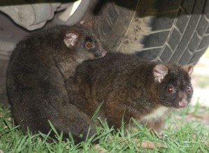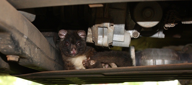 Our resident possums getting ready to climb up under the car.Having a scratchPrevelly showing huge fire damageBoth are very sleepy and very comfortable and cool up under the car. Left click on photo to get a better look.