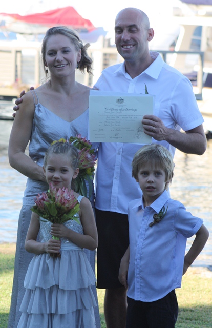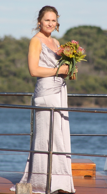 What a beautiful wedding it was. The weather was perfect. The ceremony was held down by the banks of the stunning Swan River at Mosman Park, with Rebecca, Rosie and Chris arriving by boat. Bec looked absolutely beautiful and so was Rosie. Steve and Creed looked pretty good too!!!! The wedding was casual with gorgeous native flowers and many special touches. Following the ceremony the wedding party and parents (Derek and Therese, Chris and Merelyn and Mal and I ) went back by boat to Little Creatures Brewery where the reception was being held. Fun for all was had with the 3 fathers giving speeches, Mim (Bec’s grandmother) reading a beautiful poem of Bec’s life that June(Mim) had written herself, finishing off with Bec and Steve having a few words. Molly, the MC was very amusing.