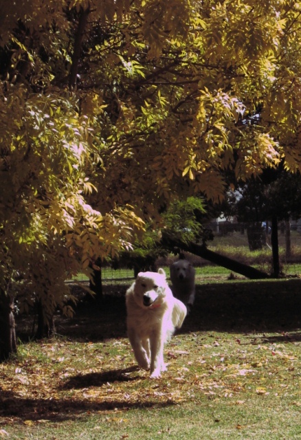We promise we won't try to escape any more Nanna...Milly and Jack ...the 2 Italian Maremma SheepdogsI love the autumn colourWaiting for new tenantsYes...the sun may be still out, but there is smoke coming from the chimney.Mac "Attack" trying to sleepBo....Looking forward to his treat at dinner time !!!!Bae..."Mum and Dad will phone soon....I'm sure they still love me, even though they have gone again !!"A perfect crab appleAutumn colour near the chook shed