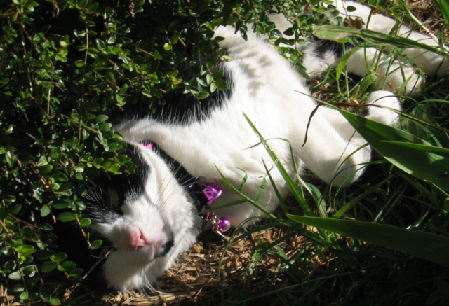 Mac Attach is asleep in the front garden, Bo is off exploring somewhere while Bae has given up on the game of meowing at the front door to be let in and once in, running back out the cat door, only to meow 2 minutes later to be let in again. After a few repeats of this I caught on to the game and she has given up now and is sleeping next to me.