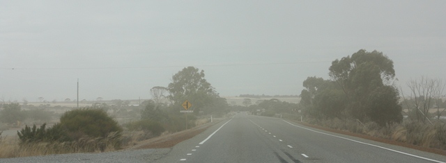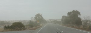 No, not fog, but a dust stormPart of the old "Rabbit Proof Fence" that was built running from between Albany and Esperance in the south of WA up to Port Headland in the north.