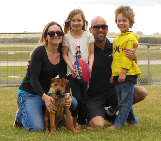 Rosie 7 years old (with missing teeth !) and Creed who is 5 years oldNew member to the family, Fletcher ( a Ridgeback / Kelpie cross)..... so cute, but hide your shoes !A Father's Day picnic at the airport.The family....Bec, Rosie, Steve, Creed and FletcherA Tiger Moth getting ready to take off.A W.A Royal Flying Doctor Service plane landingAt work in the tower .... a very busy, and I imagine at times, very stressful spot. Singapore Airlines and China Southern Airlines, both have training facilities for learner pilots here. Singapore has about 200 trainees a year while China has approximately 150. The tower averages 700 planes a day, with 2400 being the busiest recorded day.... busy with only 3 controllers rostered on at a time !!! Steve is the contoller on the right of the photo.