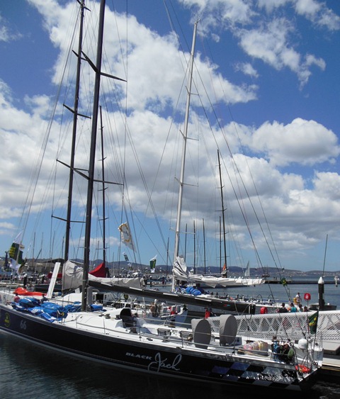 We have had a wonderful week enjoying the “Taste Festival” a 7 day annual food and wine event in Hobart, and of course watching the yachts coming in for the Sydney to Hobart race. Mal has had a full does of boats (he is in his element) seeing the winner (Wild Oats XI) come in from the rocks just near our home at 6.30am, checking all the boats in Constitution Dock every day and even watching them come across Storm Bay from the comfort of our home !!!! We have loved it all.