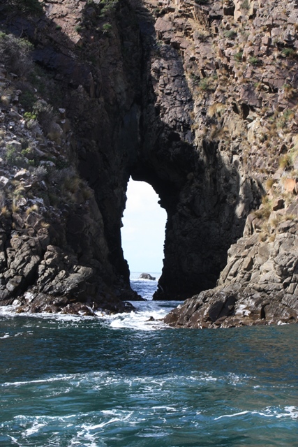 A highlight of our visit was a four hour boat trip along the coast of Bruny with Bruny Island Cruises. Their open design boats, and excellence in maneuverability, allowed us to get up as close as possible to sea and coastal wildlife, cliff faces, sea-caves, and feel the joy of passing between the narrow gap between the coast and The Monument, a tall and slender sea stack. It was amazing.