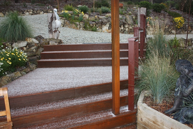 Things are going well on our “bush block”, with much clearing being done prior to the summer months with the dangers of bushfires. Speaking of fires, we had a terrible experience 2 weeks ago when Kathy and Michael’s (son and daughter-in-law) home next door (about 1km away) burnt to the ground. I was in the garden at the time and could not believe the amount of black smoke coming from their direction. I have never run so fast in gum boots in my life!!! When I got there they had just escaped out of the home, Michael with burns and certainly less hair, and Kathy with major bruising and 3 fractures from jumping out of the upstairs window. The local police and fire brigades (all 7 fire trucks) were wonderful although there was little they could do to save the home. The main thing was that Michael and Kathy were safe, although we are all sad at losing one of the beloved cats, Mia, who was not so lucky. I think we are all cured from using electric blankets. It was an experience I hope we never have again !!