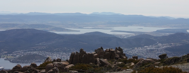 We then reboarded our aircraft, and returned to Cambridge Airport, via the spectacular Eastern Arthurs and Federation Peak, down the Huon Valley and over Hobart City. The plane flew through a bit of turbulence dropping about 10 meters (??) suddenly a number of times. I felt like I needed a nip of the Lark Whisky given to Mal from Bec and Steve for his birthday !!!!