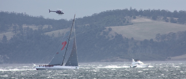 Wild Oats XI coming past South Arm (4 minutes from home).Wild Oats XI coming around the back of the Iron Pot Lighthouse at South Arm (left click on photo to enlarge)Early morning waiting for the winner to arriveComing up the riverThe boats were beautiful Mal loved them allThe winnerSalamanca "pirate"A "thong" Christmas treeThe weather was perfect