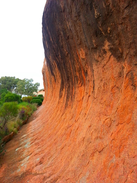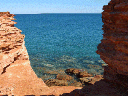 Kalbarri is a tiny little place located at the mouth of the Murchison River. I was amazed to read in one of the tourist brochures that the population here is 2,000 – most of those people must be living in far-flung farming properties in the region – certainly there doesn’t seem to be any thing like that number of people in town.The weather here is less extreme than further north. We are officially south of the North West of WA and I guess this would be accurately described as being the northern most reaches of the mid-west coast. A good number of Perth folk spend their winters here, even though it doesn’t get anywhere as warm and toasty as ‘further up’. The winter temps here range from the low to mid 20s. My idea of paradise I think! I have never been one for the extreme hot and this trip has confirmed my love of slightly cooler climates. Rain-fall here is quite poor, as displayed by the fairly barren sandy coastal flats that surround the town. The Rainbow Jungle is out along the road heading out of Kalbarri town. This scenic drive takes you down to all the coastal gorges and some outstanding coastline. Massive multicoloured and layered sandstone and limestone cliffs tower over the sparkling turquoise ocean and enormous waves hurl themselves against the forbidding cliffs and rocks. Amongst all the gorges are some wonderful surfing beaches. Yesterday, there were whales breaching wherever we looked. A ‘must-do’ is to sit and watch the boats attempt the break from the river into the ocean. Worse bar than Ballina.