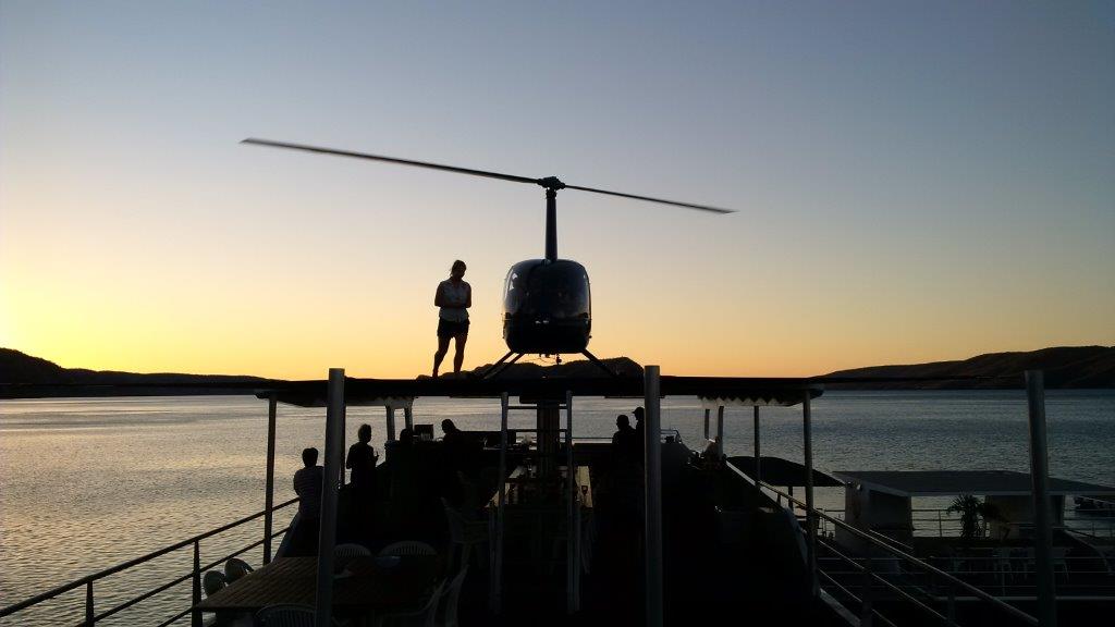 Last Thursday and Friday we took a flight from Derby on a turboprop Jet Seaplane flying over the Buccaneer Archipelago landing onto Talbot Bay. After dropping our backpack into our cute little cabin with an amazing view on the house boat we were sleeping on that night, we boarded the fast boat “Jet Stream” for an exhilarating thrill ride though the Horizontal Falls. We had all the toys attached to the house boat including a helicopter for our enjoyment. That night we enjoyed a yummy barramundi BBQ and a few wines with our fellow travellers. Only 24 of us. After brekkie the next day we were back out on the fast boat for another trip over the falls before boarding our plane back to Derby. It was certainly a highlight of our trip !!!!
